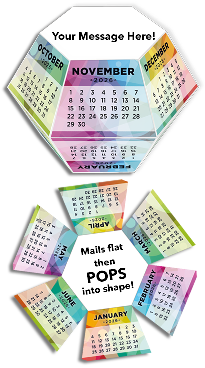 Pop-Pop, Fizz-Fizz! Oh, what a surprise this is! This colorful and fun 2026 calendar has plenty of room for your company’s logo. Capture the attention of your customers and maintain your brand's visibility throughout the year with the Fizzie Pop-Up calendar.
